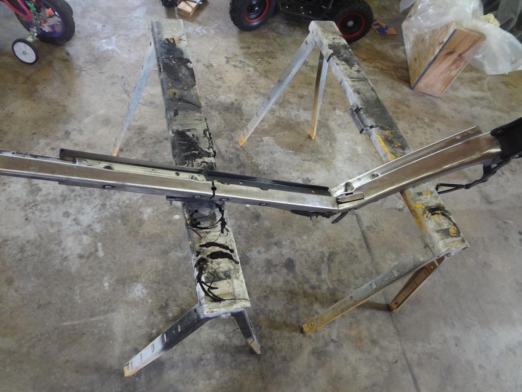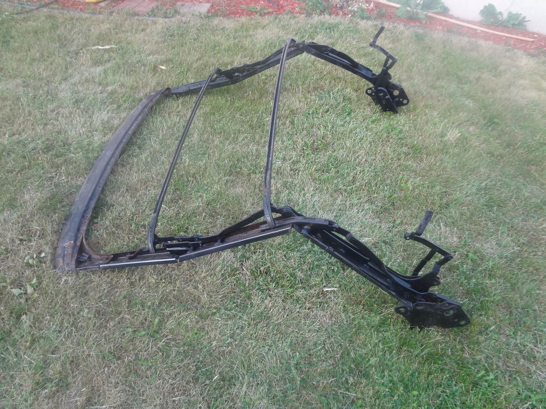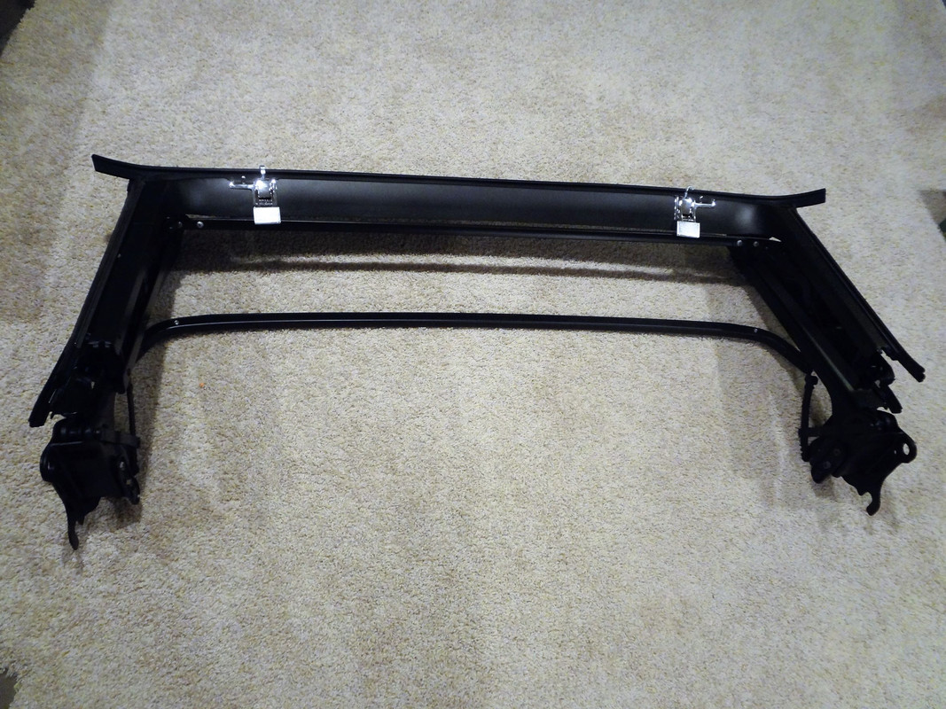 Just got done assembling everything.  Sanded and polished the 6 side weatherstripping chanels and installing the weatherstripping.  I installed a new set of latches which didn't fit near as nice as the original ones...big shock I know.  One side fit ok but the other side wasn't even close to fitting.  I had to sand down the back side of the latch so it would bolt up.    Some weatherstripping needs to be trimmed and I just realized that I didn't installed the side wires(which I don't have anyway...they come with the new top)but it's basically done.
