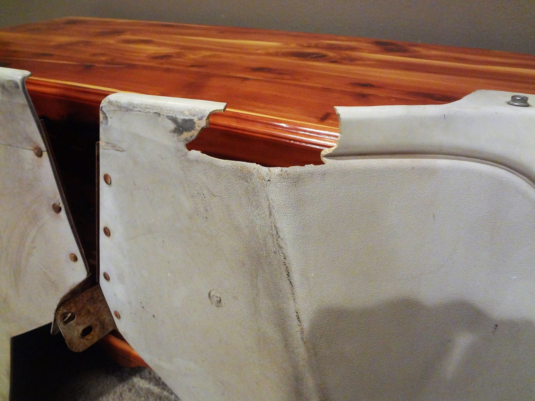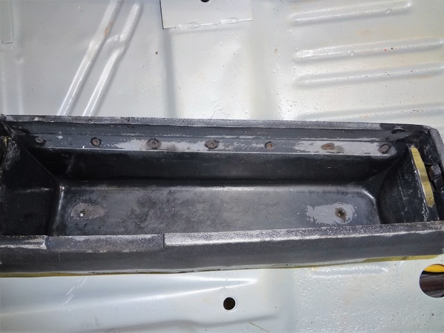 The back is somewhat interesting.  One panel looks like it was molded in pearl white.  The other looks tan.  Looking at the dealer data books, no tan interior was offered in a convertible in 68.  67 seems to show a tan though.  You can see the white overspray on the back side where the top/bottom sections were painted white.