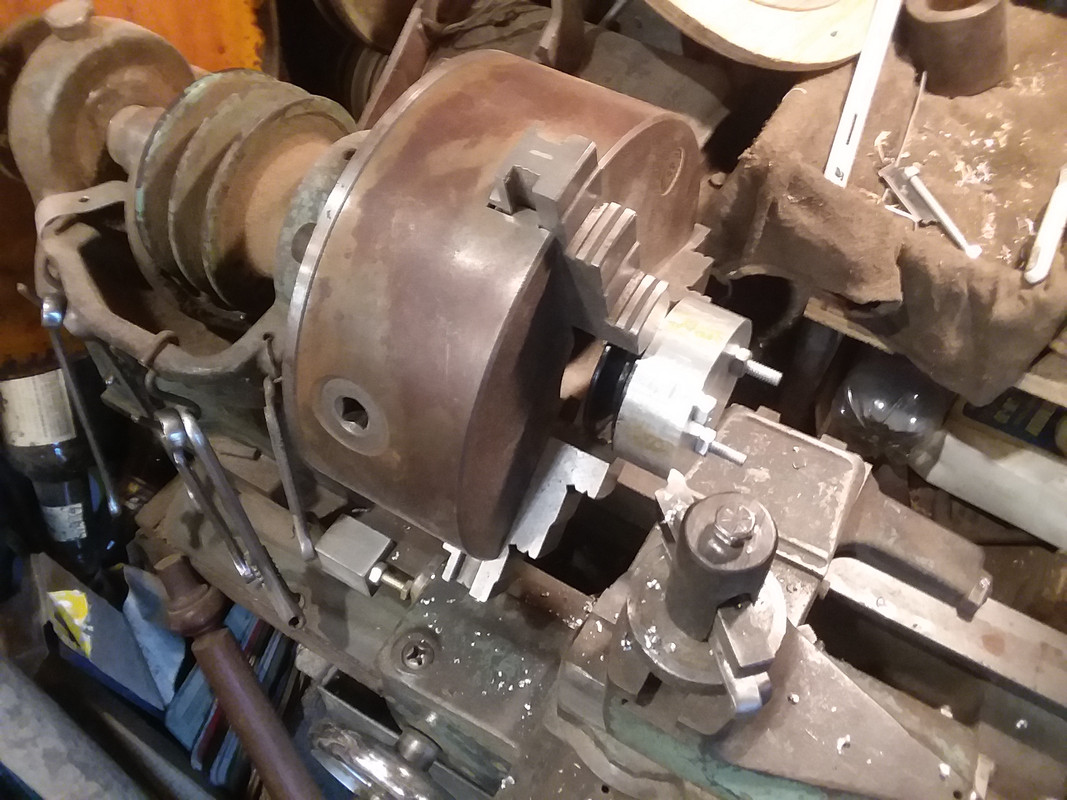 After the outer diameter was made completely round relative to the pulley, I flipped it around to machine the recess for the alternator shaft/nut.