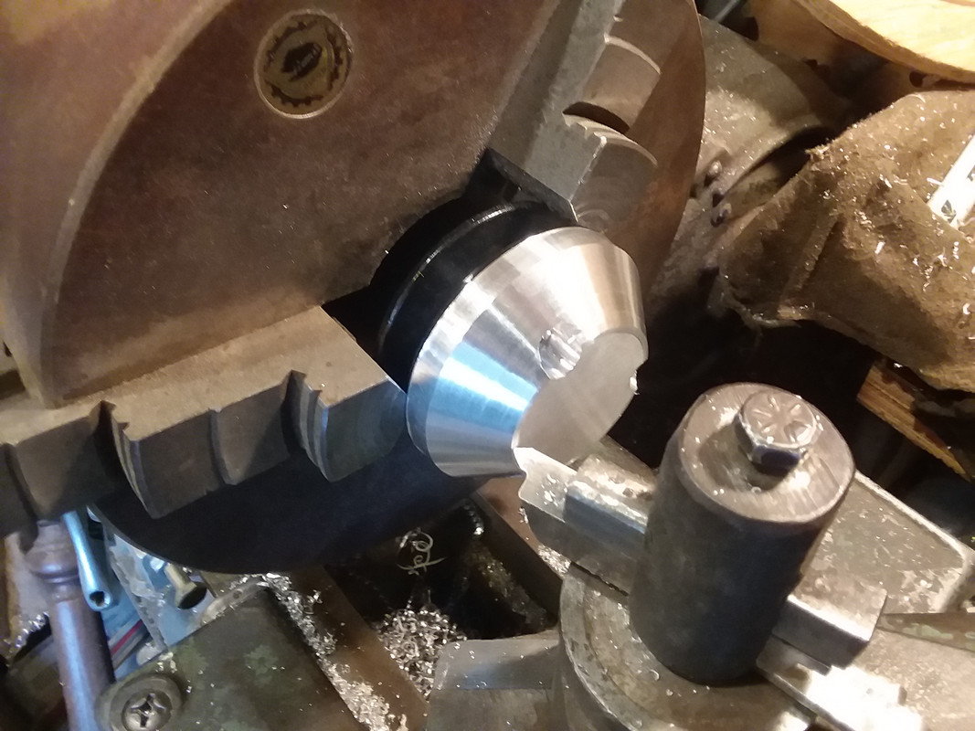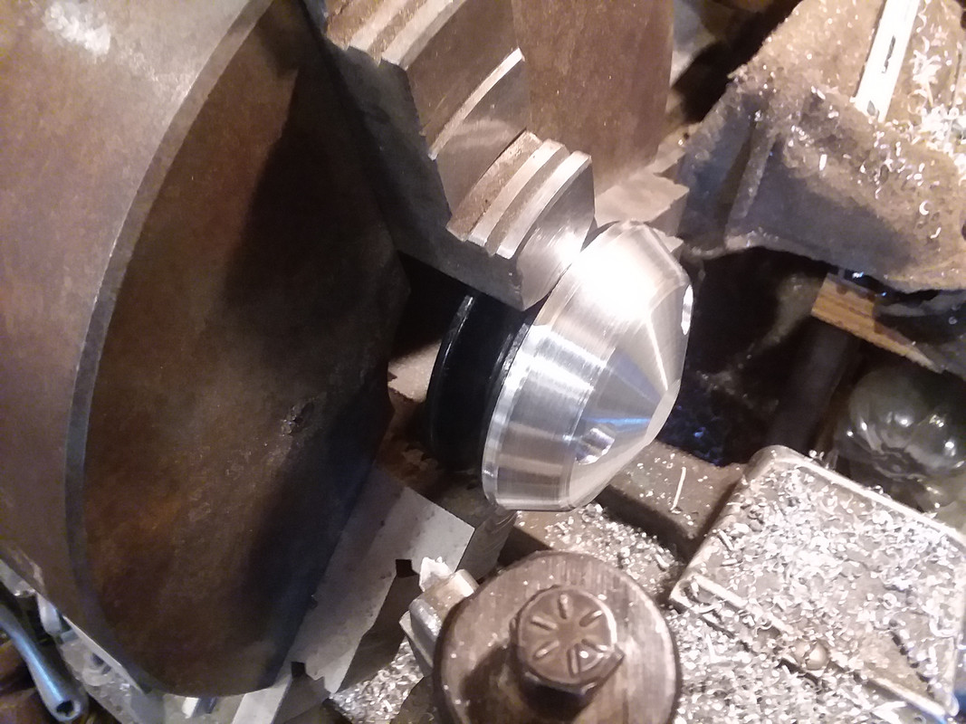 With that out of the way, I flipped it back around and mounted it to the pulley again and started machining the outer angles.