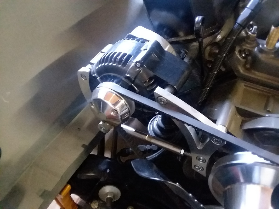 After sanding and polishing, the finished product turned out really nice.  Now the alternator matches the rest of the pulleys.