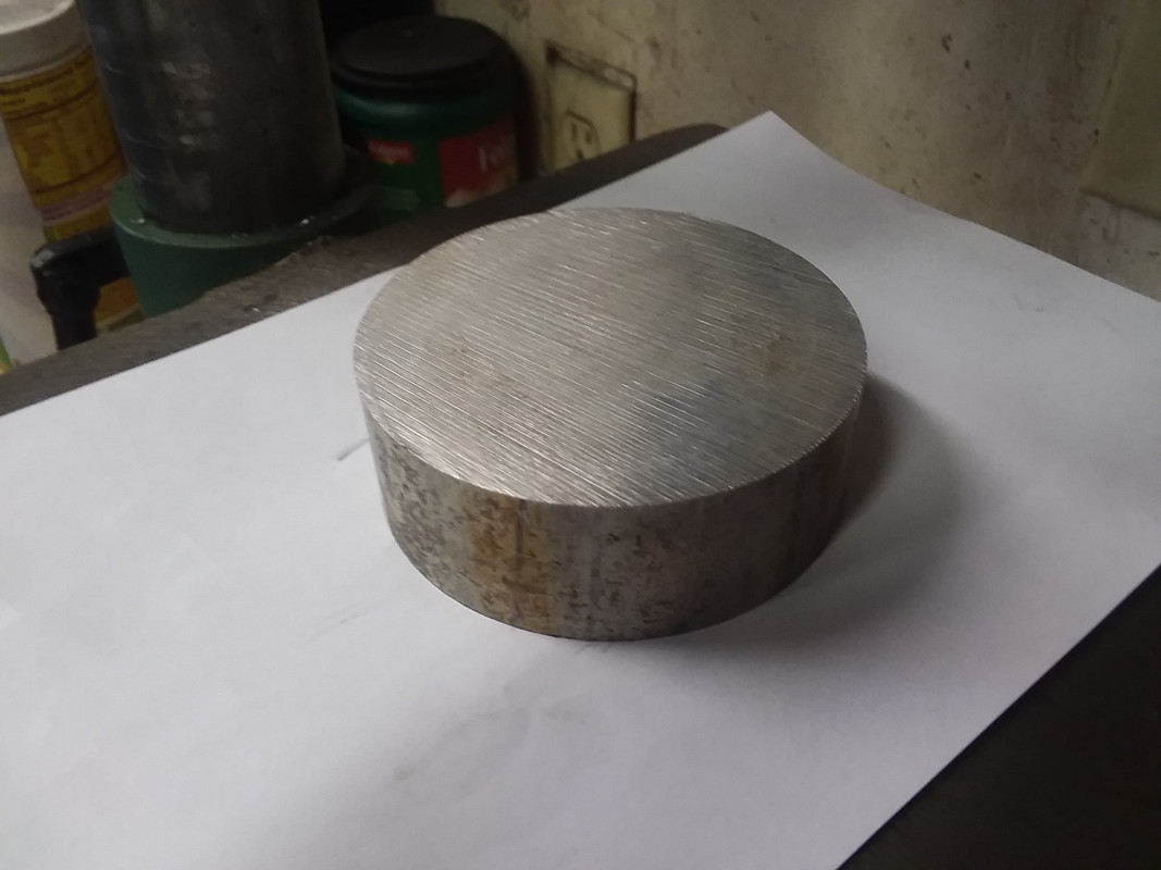 The pulley came with three shallow holes in the front face.  I'm not sure what they are for...maybe some type of spanner wrench to hold the pulley while the nut is tightened?  Anyway, those holes looked like the perfect place to attach a cover to.  I drilled the holes deeper and tapped them for 1/4x20 allen head bolts.  Then I picked up a 1" thick piece of 3" diameter aluminum at the local metal yard.